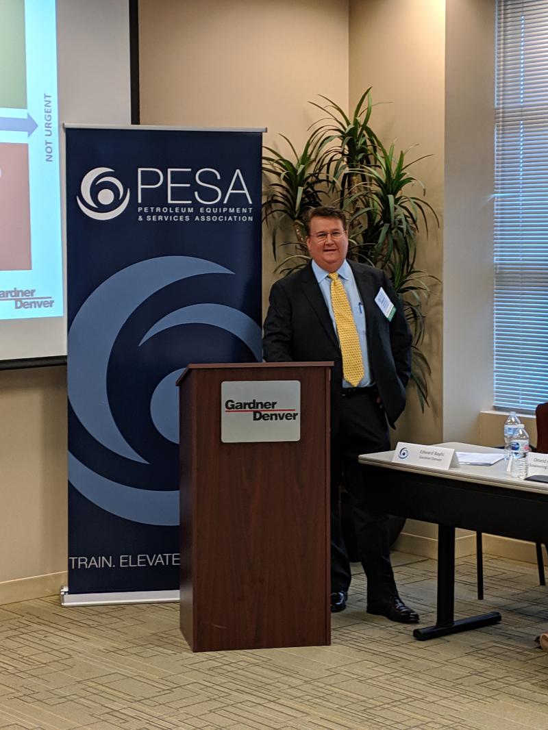 PESA Advisory Board Member Edward Bayhi, Vice President, Petroleum & Industrial Pumps, Gardner Denver, shared his thoughts and insights on proactively preventing “fires” in the workplace versus mitigating them, during a leadership forum hosted by the Emerging Executives Committee on October 24.