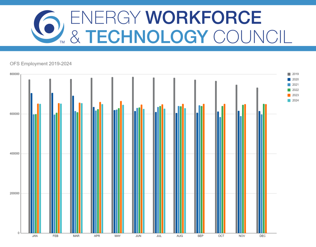HOUSTON—Energy Workforce & Technology Council today released its monthly jobs report, highlighting a positive trend of steady growth in employment across the U.S. energy services sector. Total jobs in the sector reached 629,435 in August 2024, reflecting an increase of 2,989 positions from July, according to preliminary data from the Bureau of Labor Statistics (BLS) and analysis conducted by the Energy Workforce & Technology Council.
