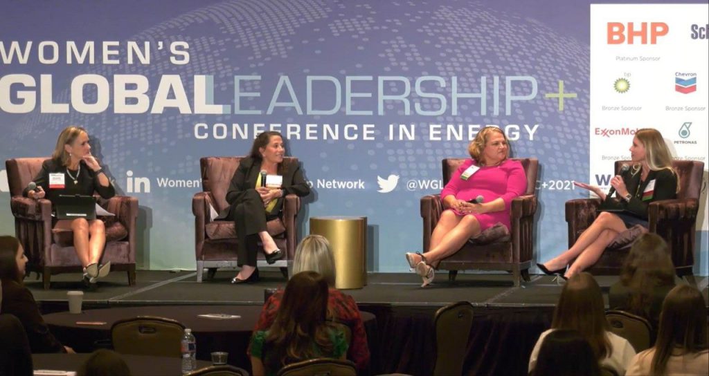 Ways of attracting and retaining women into leadership roles dominated a panel discussion during the 2021 Women’s Global Leadership Conference on November 2. Council CEO Leslie Beyer spoke about pay equity, mentorship, executive coaching and more with Kim Coomber-Hallum, bp, and Anne Psencik, EagleClaw Midstream, moderated by Alexandra “Alie” Pruner, Tudor, Pickering, Holt & Co.